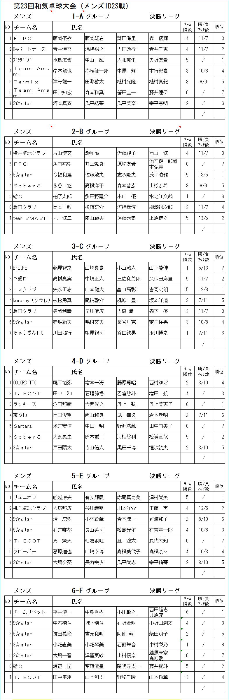2025年11月03日(月・祝)和気卓球大会の試合結果